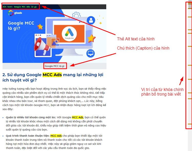 Đây là một trong những bài viết chuẩn SEO trên website của GLEADS. Từ khóa chính là “MCC Ads”, được đặt ở phần đầu trong tiêu đề bài viết, ở đoạn Sapo, một số heading, và rải khắp toàn bài.