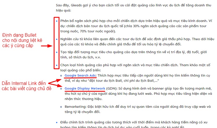 Bạn cũng cần trình bày các mục nội dung một cách hợp lý để người dùng dễ dàng điều hướng, đồng thời hỗ trợ công cụ tìm kiếm hiểu cấu trúc nội dung.